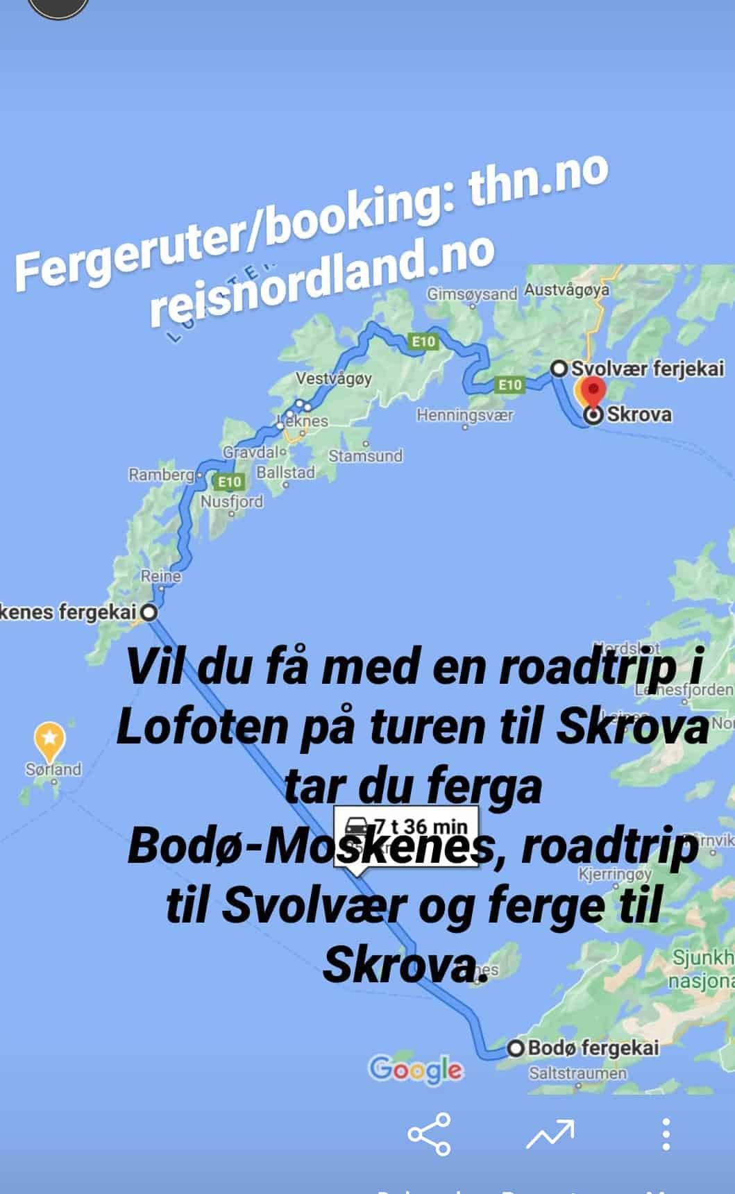eller bil fra Evenes til Svolvær, – ferge til Skrova.